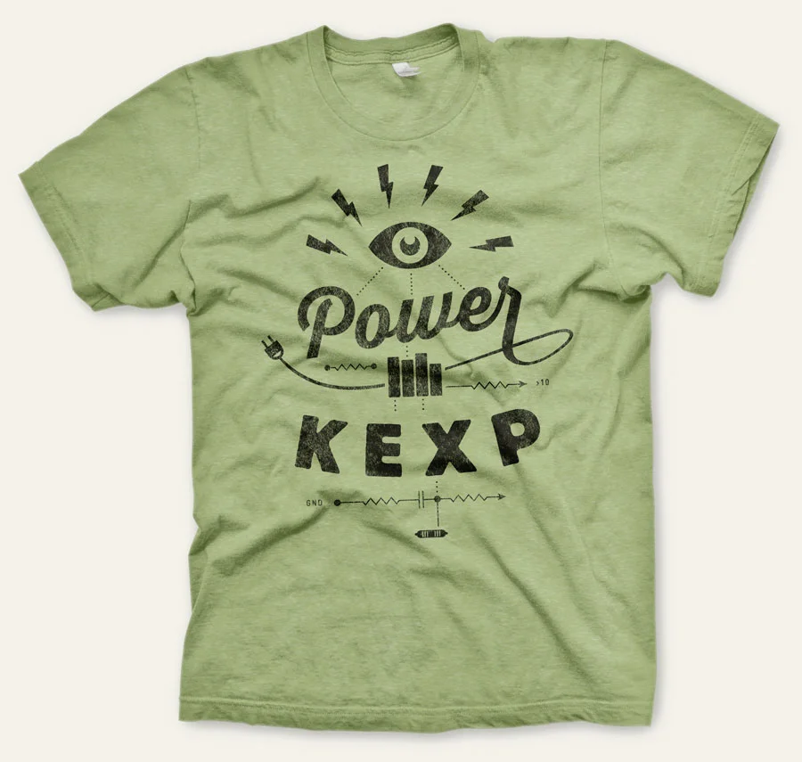 I was tickled when my friend Kurt Reighley (and KEXP DJ El Toro) called me up to talk about designing this year's t-shirt for their fall fundraising drive. I've always been a huge fan of KEXP and felt lucky to share Seattle with such a great creative energy. So we harnessed that exact idea in the form of vintage stereo circuitry.